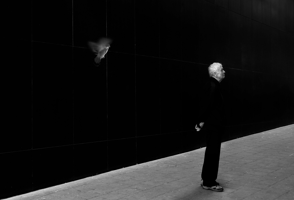 When a man appears in the picture, the entire photo gets a different meaning. A story came to life. The man I see in my lens is a part of the cityscape. He's combined in lines of the geometry and city structures. It's just a fraction of a second – figure on the street, his shadow on the wall, a running man’s leg, and reflection in the window. That second is not a definite record – captured in frame it gets its own life. The man keeps going – I have a trace of a story that never happened, but came to existence in the viewer’s head.
